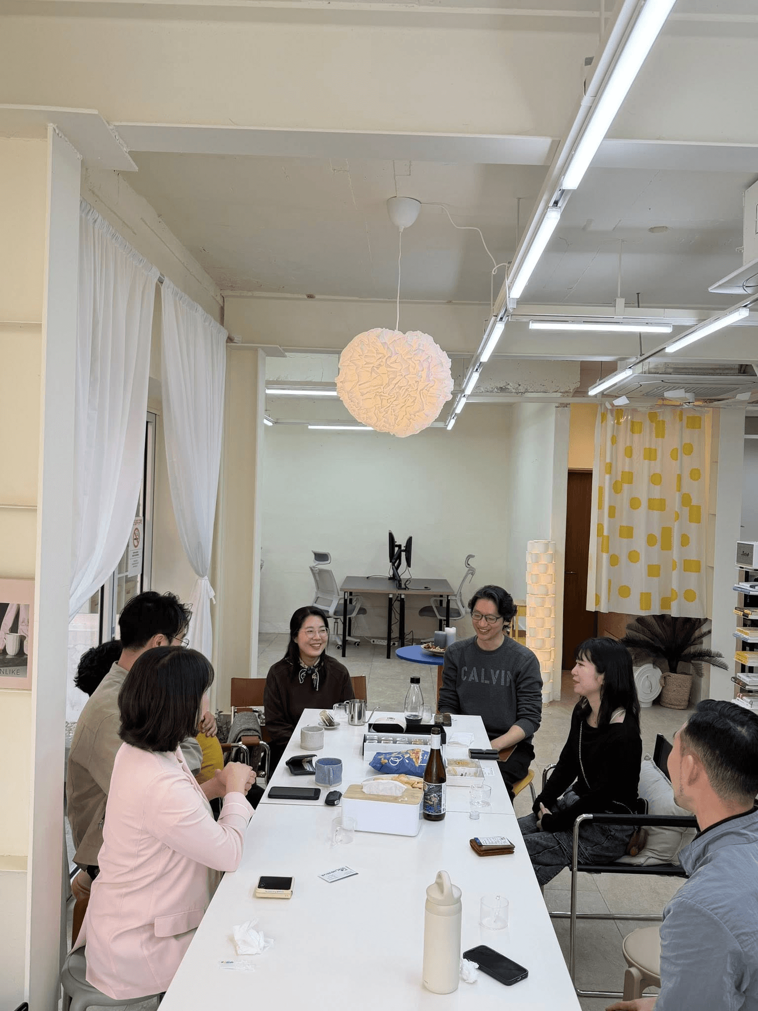 아즈나 상은 릿업오피스에서 반나절 정도 일하면서, 자연스럽게 다른 멤버들과 대화를 나눴어요. 어떤 일을 하는지, 부산에 얼마나 머무르는지, 해리단길에서 뭘 하면 좋은지 나누며 부산 로컬에 대해 더 알 수 있었던 시간이었는데요, 이런 대화가 일어날 수 있는 건 오픈데스크라는 물리적 구조 덕분이에요.
