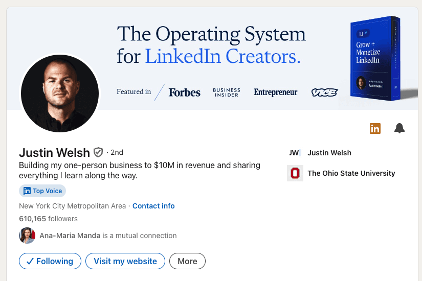 조쉬에게는 두 명의 롤모델이 있는데요, 첫 번째는 링크드인 1위 크리에이터 저스틴 웰시(Justin Welsh)입니다.