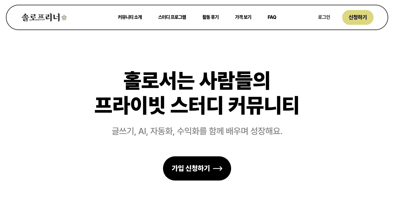 멤버십 프로그램(솔로프리너 랩): 월 정기 결제 방식의 지속적인 커뮤니티